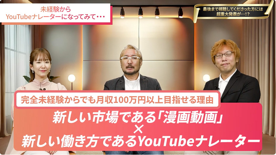 YouTubeナレーターの需要拡大を踏まえ、「声を仕事にしたい人に力を貸してほしい」との想いから、